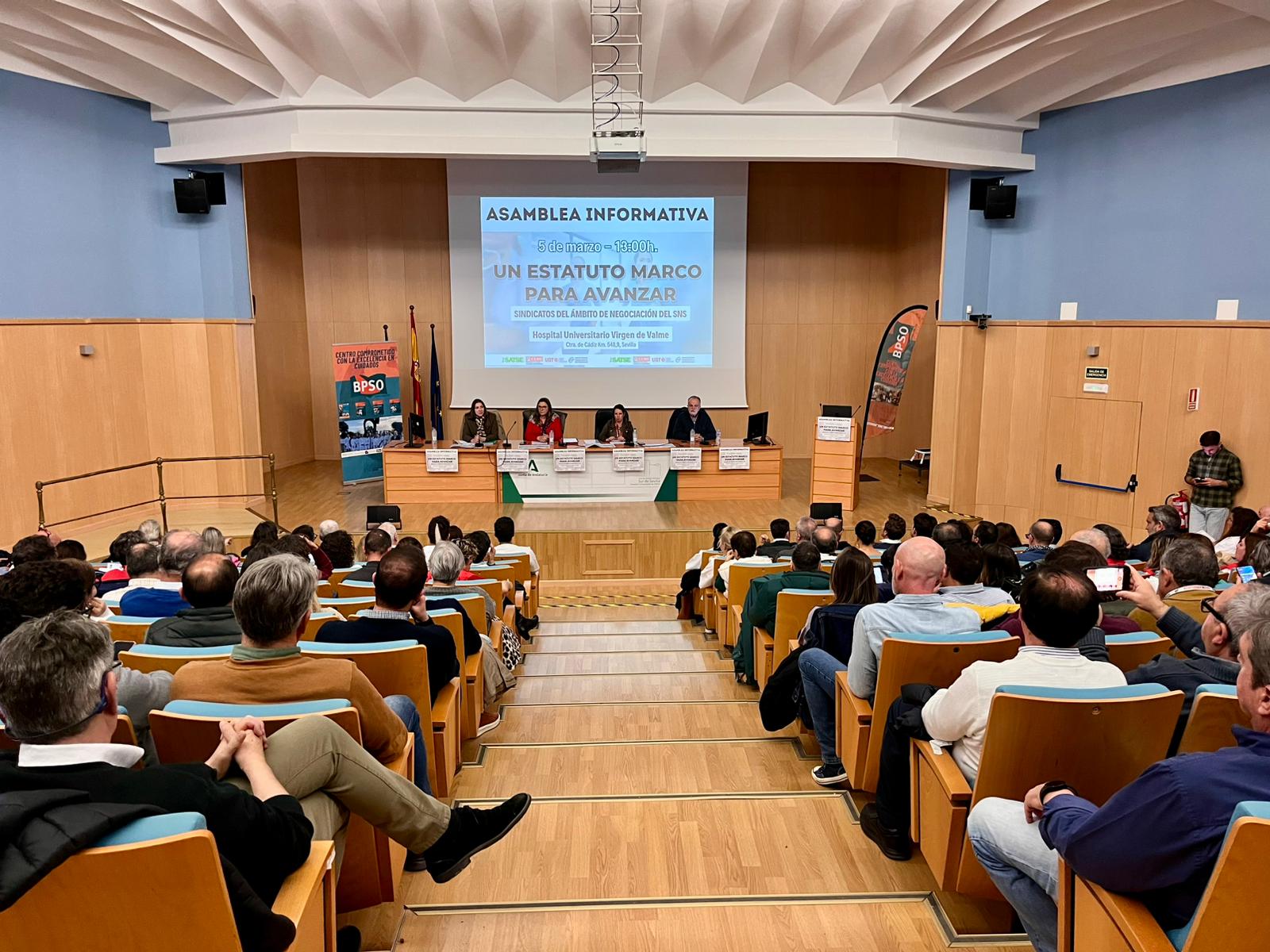 Profesionales del Hospital Universitario Virgen de Valme de Sevilla han conocido con detalle todas las mejoras que contempla el Anteproyecto de Ley del Estatuto Marco del personal estatutario de los servicios de salud, en el marco de una Asamblea Informativa organizada por SATSE y los sindicatos con representación en el Ámbito de Negociación, FSS-CCOO, UGT y CSIF.