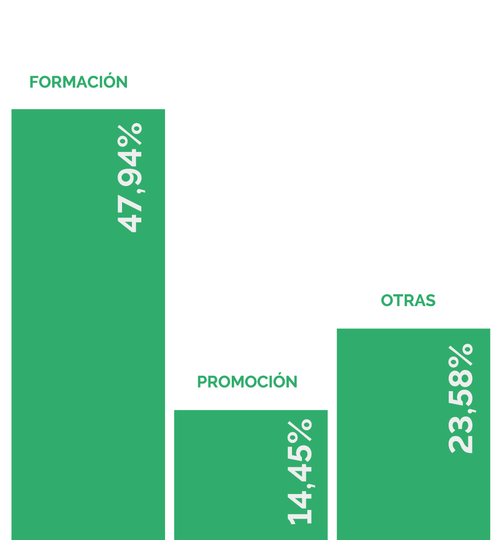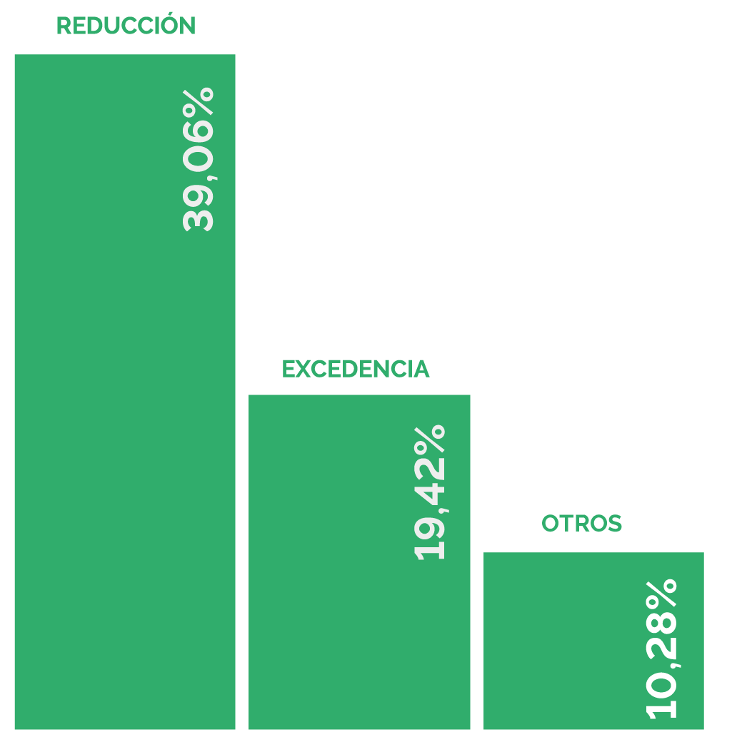 El 19,42% ha necesitado solicitar periodos de excedencia, el 39,06% ha necesitado solicitar reducción de jornada y el 10,28% ha necesitado solicitar otros permisos no retribuido.