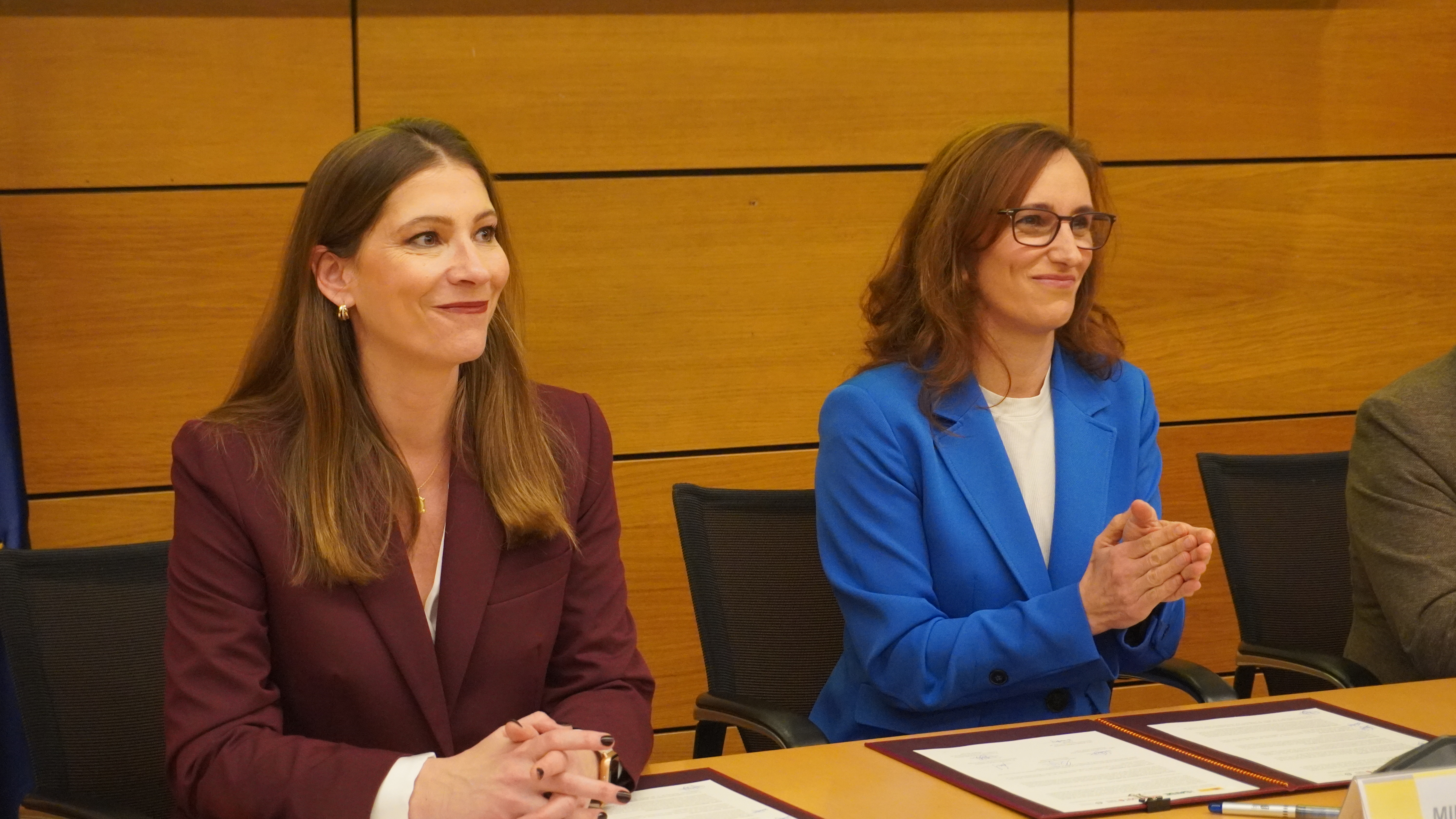 En un acto celebrado en la sede ministerial, la presidenta de SATSE, Laura Villaseñor; el secretario general de la FSS-CCOO, Humberto Muñoz; la secretaria general de Sanidad de UGT-Servicios Públicos, Begoña Ballell, y el presidente del sector nacional de sanidad de CSIF, Fernando Hontangas, han suscrito con la ministra de Sanidad, Mónica García, el documento que formaliza su respaldo al anteproyecto de Ley.