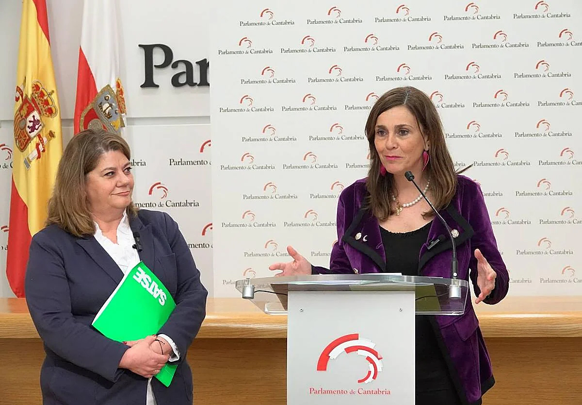 Ana Isabel Samperio, secretaria general de SATSE Cantabria, y la diputada PRC, Paula Fernandez, en el Parlamento de Cantabria en marzo del año 2024.